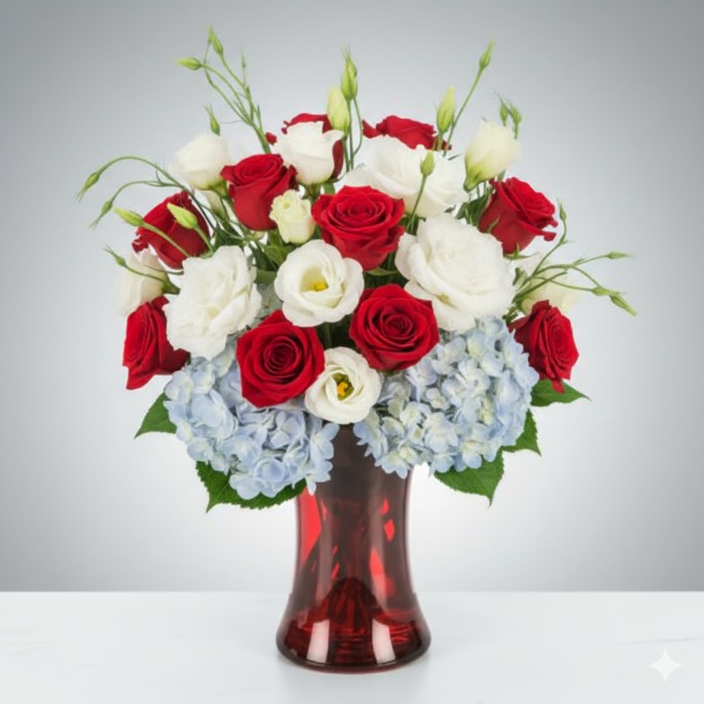 Ignite your summer celebrations with the Americana bouquet from Reema Florist—a luxurious, handcrafted flower arrangement bursting with red, white, and blue premium flowers. Designed to capture the spirit of national pride and joyful summertime gatherings, this festive bouquet is the ultimate centerpiece for Fourth of July Flowers, Labor Day Flowers, or simply as a magnificent display of Summer Flowers.